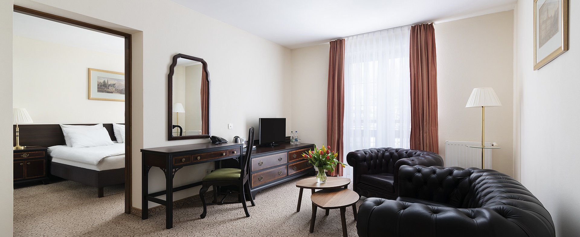 Všech našich 42 pokojů a apartmá se vyznačuje klasickým designem. Prostorné, vybavené veškerým moderním pohodlím představují záruku ničím nerušeného odpočinku.